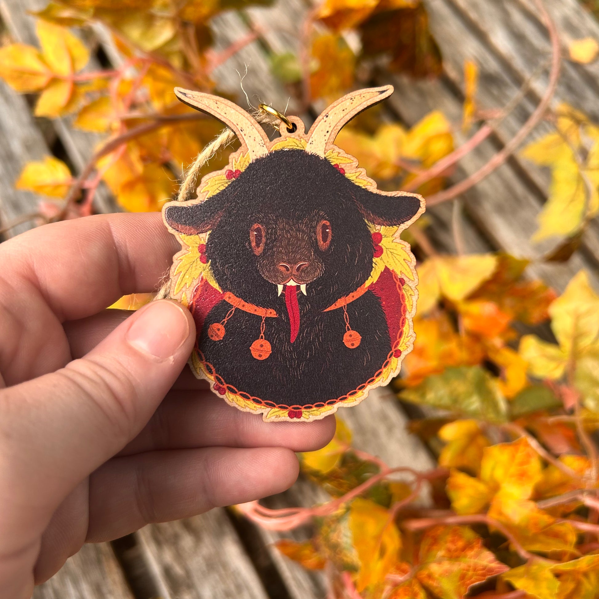 Features the original artwork of Hannah Mathis. Measures approximately 3" tall and made using responsibly-sourced cherry wood.